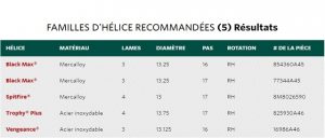 hélice recommandées selon mercury