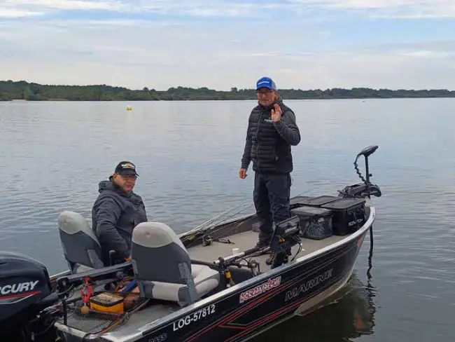 Vendredi, dernière matinée de pêche où nous avons choisi de peigner un plateau dans 4/5m de fond à la recherche du brochet. Nous attaquons quand même le premier haut fond à l’ aube au stickbait où je prendrai une perche de 30. Nous ne ferons pas de miracles ce dernier matin avec quelques petites perchettes et du flutiot, pas un seul joli poisson. Nous arrêterons à 12h car le vent s’est levé et ça commence à bien moutonner sur le lac.